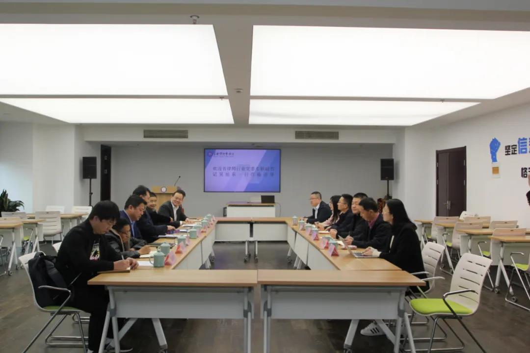 吴旭东副书记一行走访了浙江京衡(湖州)律师事务所和浙江六和(湖州)律师事务所,听取了两家律所党支部党建工作情况汇报,实地察看党建活动场所和相关资料,并与党员律师代表座谈交流。