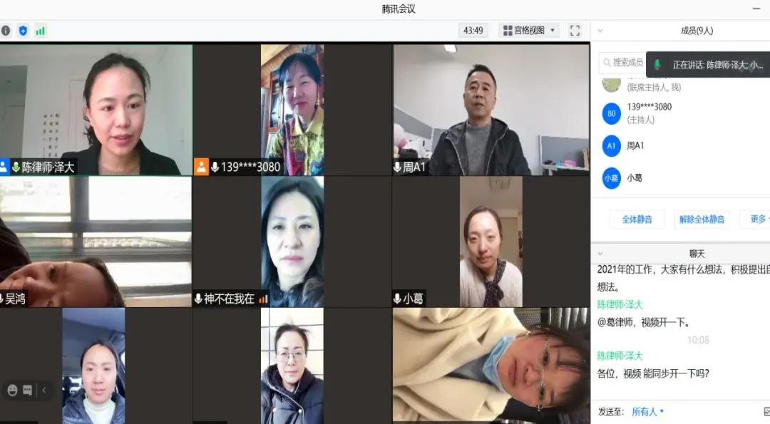 2021年2月6日上午全民乐vll女律师联谊会召开线上会长办公会议,会议由秘书长陈晔主持,市律协分管副会长周吴红出席会议。