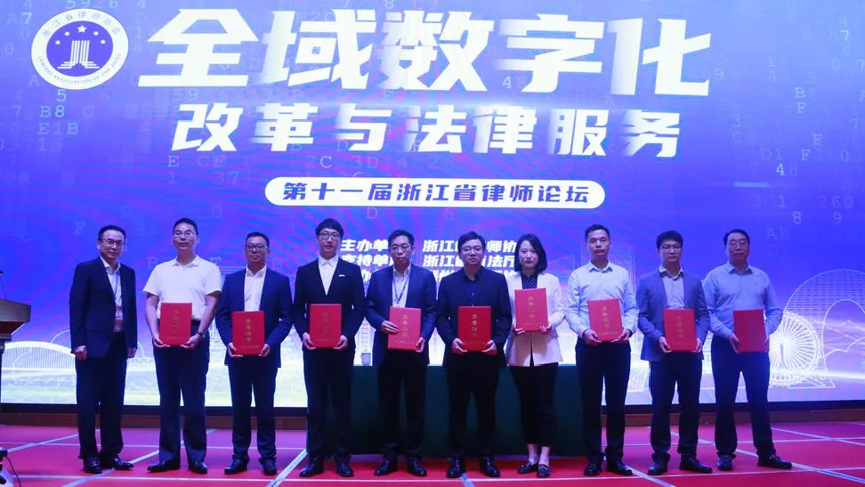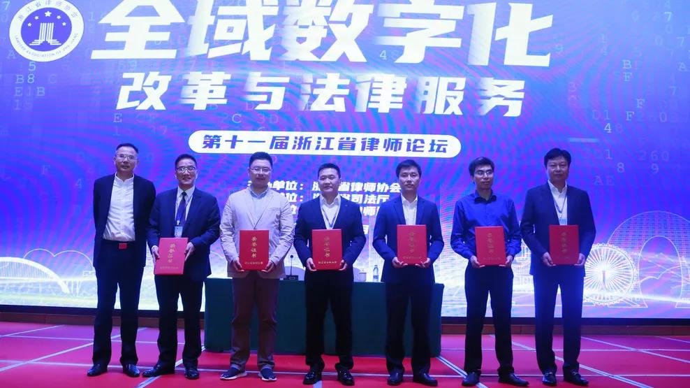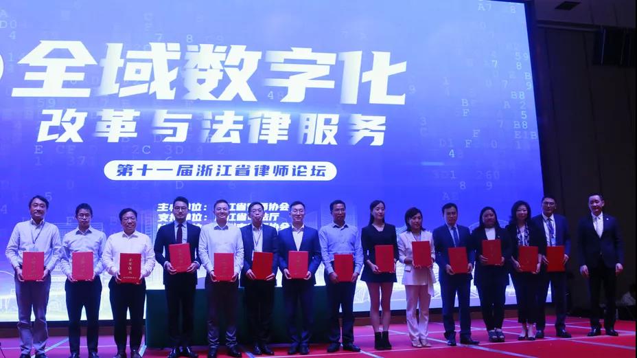 2021年10月16日,由省律协主办、湖州市律协协办,以“全域数字化改革与法律服务”为主题的第十一届浙江律师论坛在湖州成功举办。省司法厅党委委员、副厅长、省律师行业党委书记徐晓波,湖州市人民政府副市长朱留沙,全国律协副会长、省律协会长郑金都、监事长叶连友,湖州市司法局党委书记、局长裘明珠出席论坛。开幕式由省律协专职副会长陈三联主持。