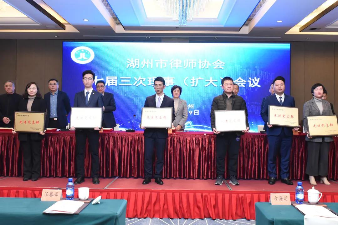 会议由市律协会长汤鉴学主持,先后表彰了“湖州市律师行业先进党支部、优秀党员律师和优秀党务工作者”,“2021年度先进委员会、信息报送先进集体及协会工作先进个人”;听取并通过了《2021年度协会工作报告及2022年工作思路》、《2021年会费收支报告及2022年会费收支预算》,同时监事会就2021年理事会工作进行了评议。
