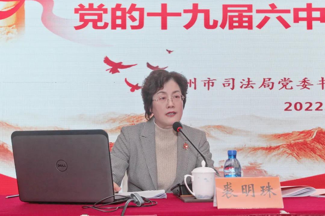 市司法局党委书记、局长裘明珠出席会议,为市律师行业宣讲党的十九届六中全会精神,传达学习市委八届十三次全体(扩大)会议暨经济工作会议精神。