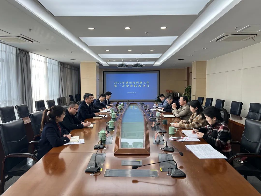 2月25日下午,湖州市检察院、市司法局、市律师协会召开2022年刑事工作第一次检律联席会议。市检察院党组成员、副检察长潘如新,市司法局党委委员、副局长方海明,市律师协会副会长徐学民出席会议。市检察院、市司法局相关处室负责人、律师代表等参加会议。