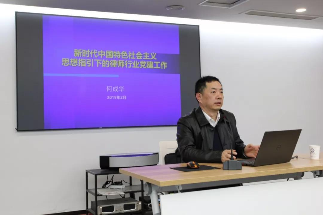 暖风拂面,春意盎然,在这美妙的春日里,来自我市浙江京衡(湖州)律师事务所党支部、浙江六和(湖州)律师事务所党支部和北京隆安(湖州)律师事务所党支部的30余名党员律师汇聚在京衡(湖州)所会议室内,聆听由市司法局党委委员、副局长、市律师行业党委书记何成华讲述的一堂生动的党课。