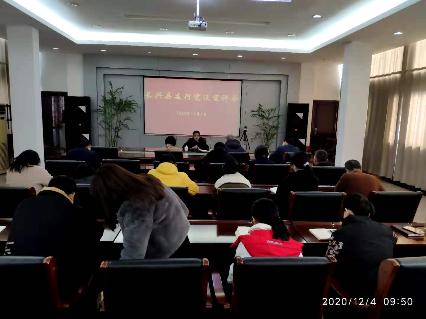 当天上午,孙晓明律师受邀在长兴县人民银行进行宪法宣讲。孙律师从宪法的发展历程、宪法的精神及地位,学习宪法的目的及意义等几个方面进行讲解。银行工作人员听了之后表示收获颇丰,加深了对宪法的认识。