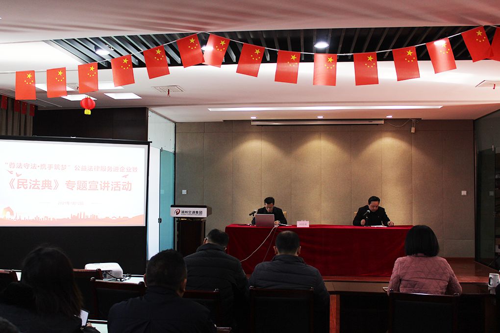 为全面学习宣传落实《民法典》,推动企业职工学法懂法、知法用法,提高法治思维和法律风险防范意识。新年伊始,2021年首场“尊法守法·携手筑梦”公益法律服务进企业暨《民法典》专题宣讲活动在浙江杭长高速公路有限公司举行,县工会法律服务志愿律师刘国祥进行了专题授课,杭长高速70名职工参加了活动。