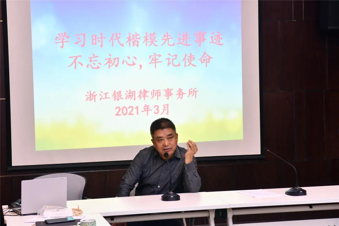 为贯彻落实全市律师行业专项治理工作的安排,优化律师纪律作风、提升业务素质,按照市司法局党委、市律师行业党委的部署要求,本所近日组织召开“律师行业突出问题专项治理学习教育大会”,本次大会围绕习近平法治思想、党史学习教育、政治规矩、律师职业道德、案例警示、先进典型等六方面开展学习教育。方建平主任担任此次会议的主讲人,全所律师参加会议。