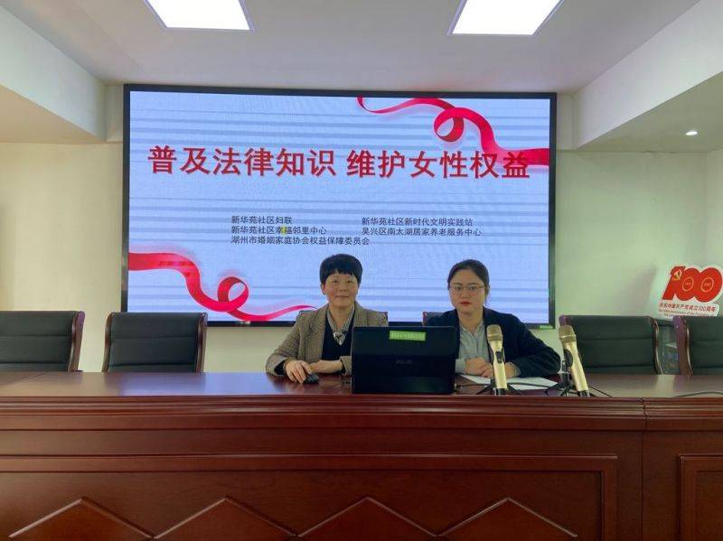 为迎接第112个国际“三八”妇女节的到来,2022年3月3日、3月4日,浙江广诚律师事务所婚姻家事部负责人洪秀英及团队律师代表湖州市婚姻家庭协会权益保障委员会来到新华苑、龙泉街道社区,参与“普及法律知识 维护女性权益”的社区活动。