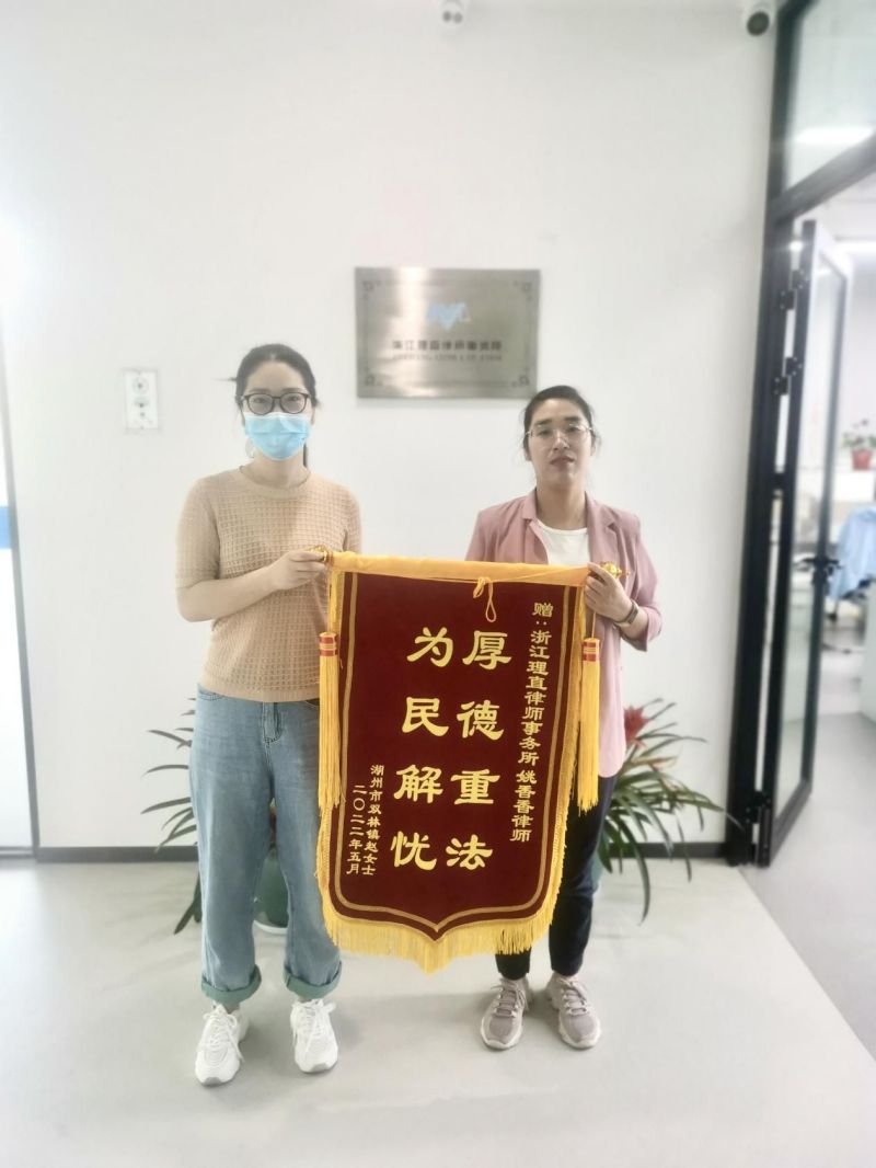 5月27日上午,受援人赵女士将印有“厚德重法,为民解忧”的锦旗送至浙江理直律师事务所,感谢理直所姚香香律师认真负责、专业有效地承办案件,并取得了良好代理效果。
