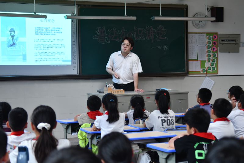 在“六一”儿童节到来之际,银湖所实习律师李奕辰走进爱山小学仁北校区,为师生们讲解《未成年人保护法》。