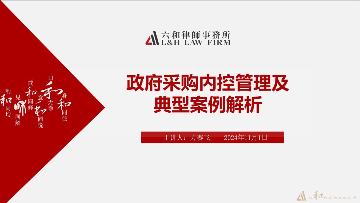 为进一步加政府采购内控管理,强化内部监督,规范采购程序,11月1日,我所方赛飞律师应受邀为湖州市港航管理中心开展了一场主题为“政府采购内控管理及典型案例解析”的专题培训讲座。