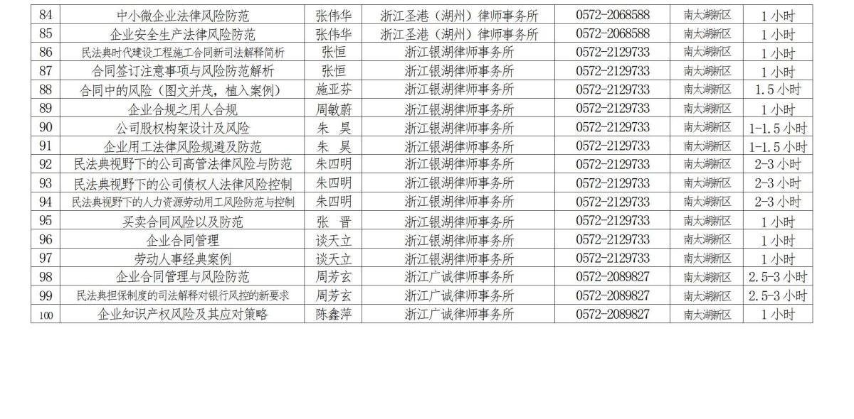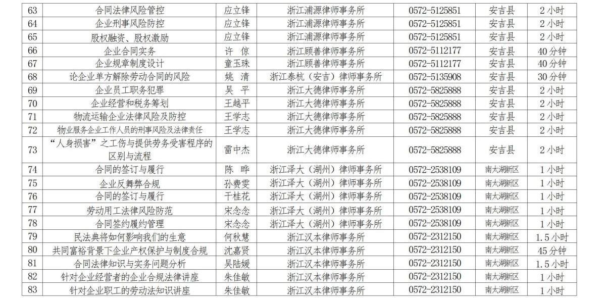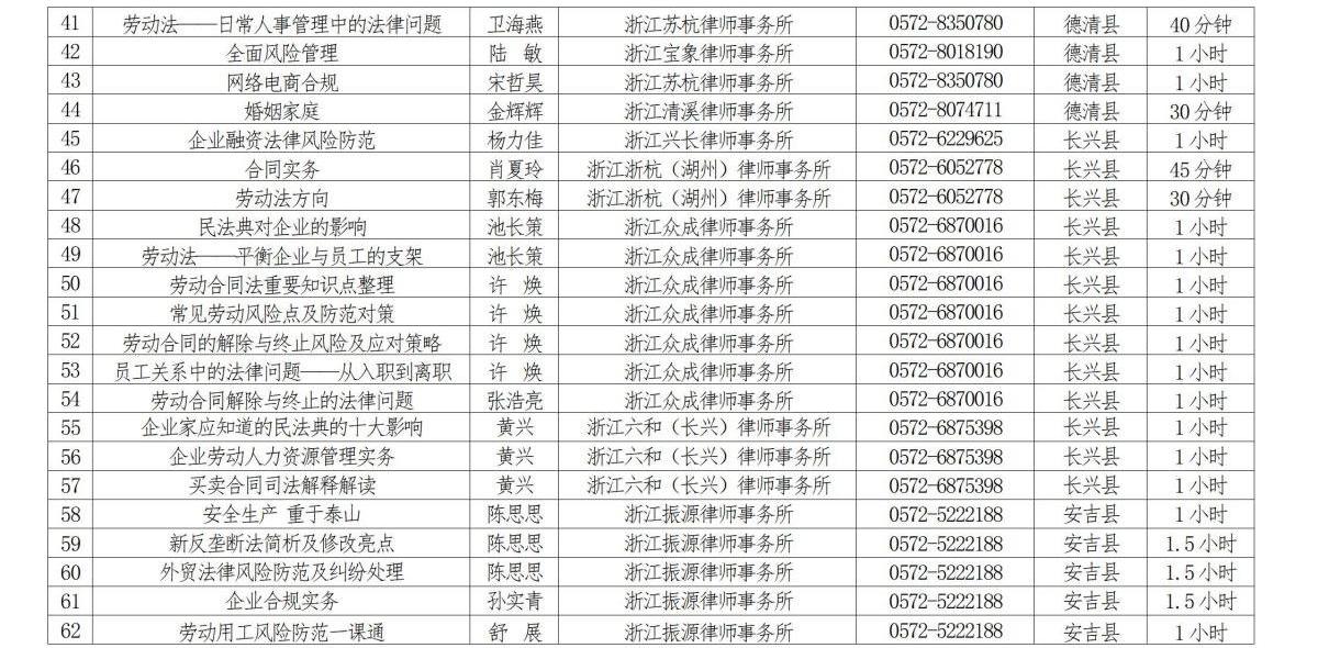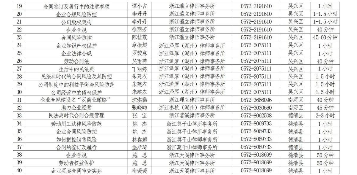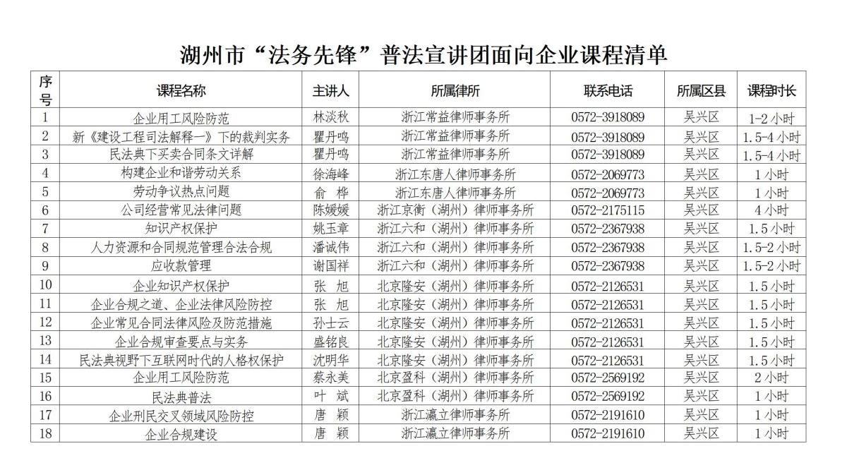 湖州市“法务先锋”普法宣讲团面向企业课程清单