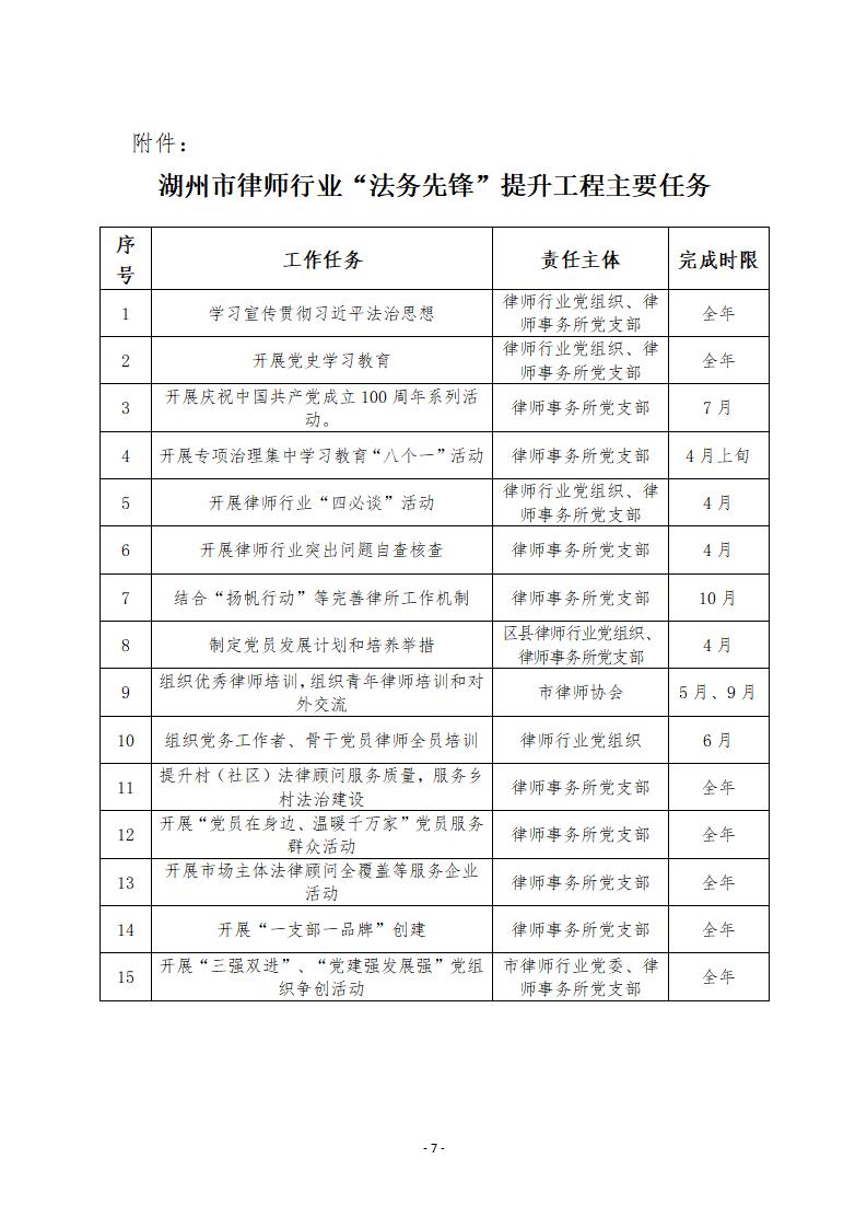 附:《湖州市律师行业“法务先锋”提升工程任务清单》