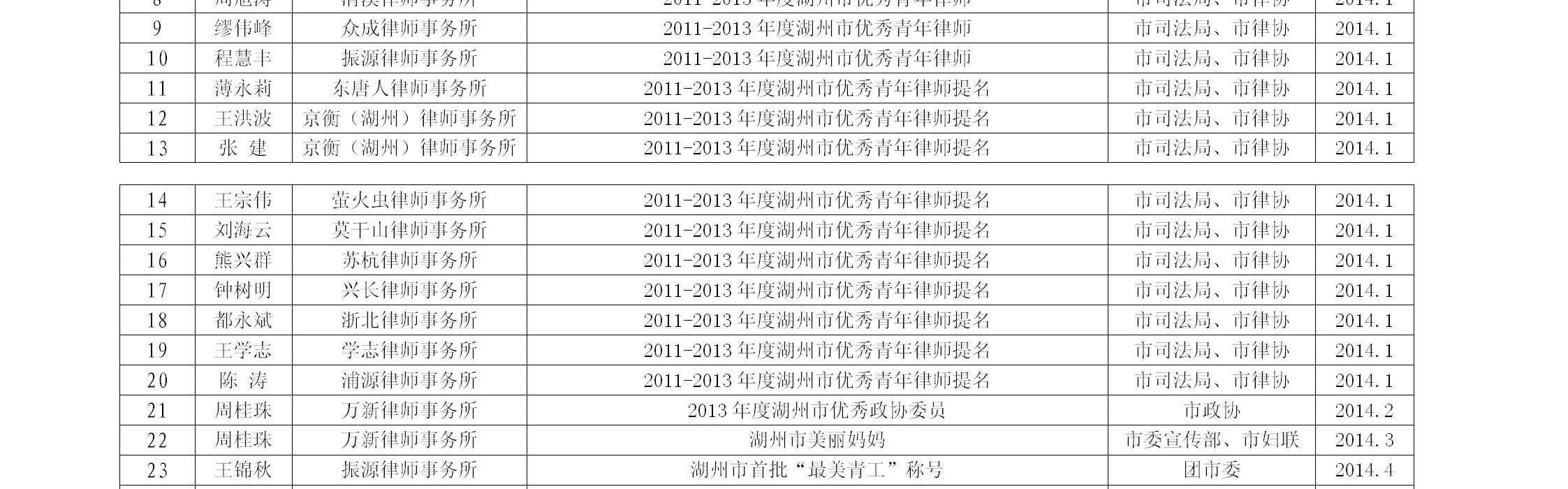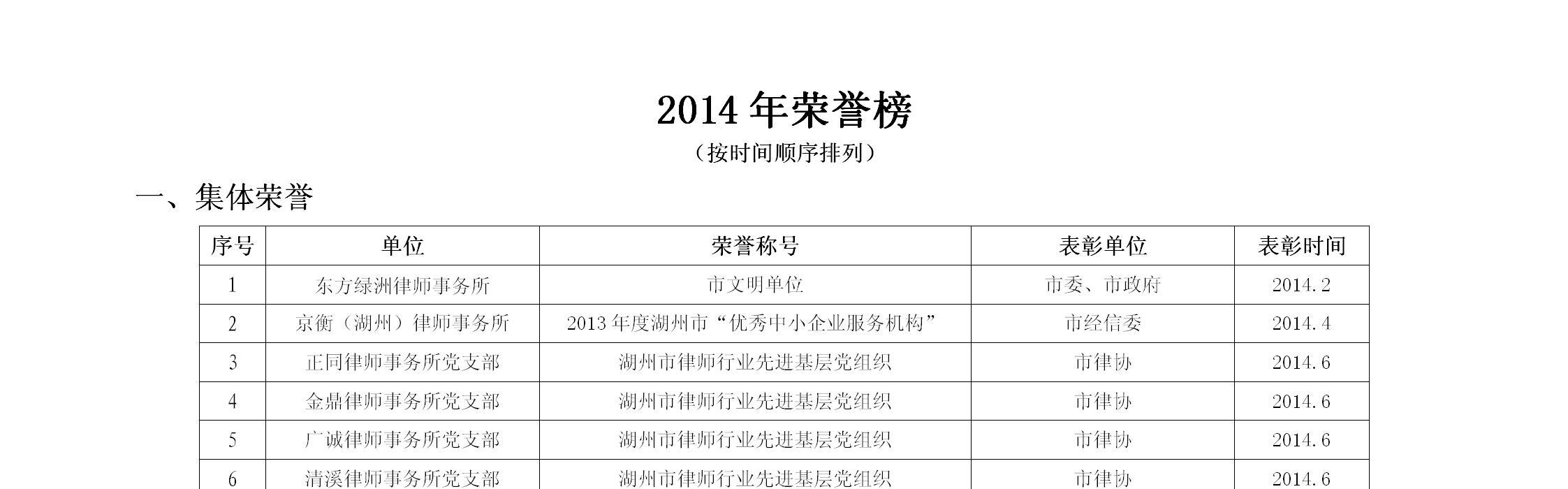 2014年荣誉榜