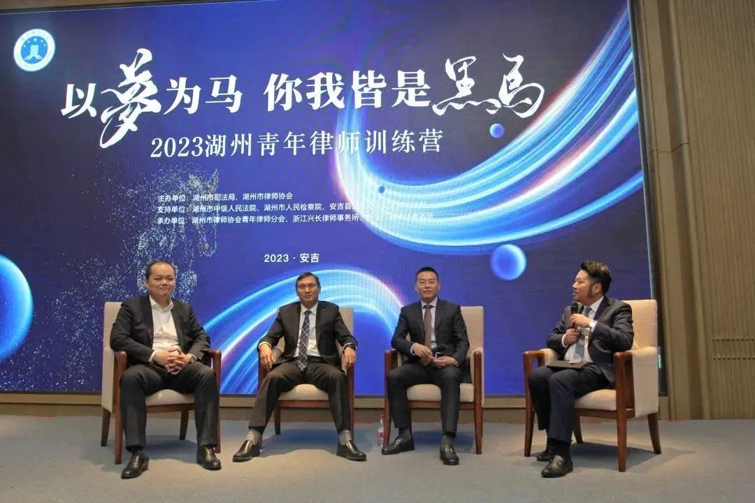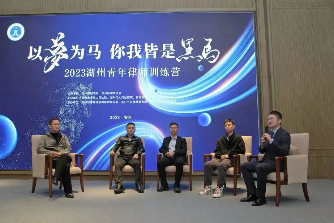 青训营邀请到湖州市中级人民法院民事审判第一庭副庭长郑扬、湖州市人民检察院第二检察部副主任杨智超、湖州市司法局律师工作处处长沈海建、安吉县公安局法制大队大队长涂锋到场,围绕沟通技巧、案件办理、庭审表现、文书功底等方面进行问答交流,并对青年律师的执业工作提出了意见及建议。
