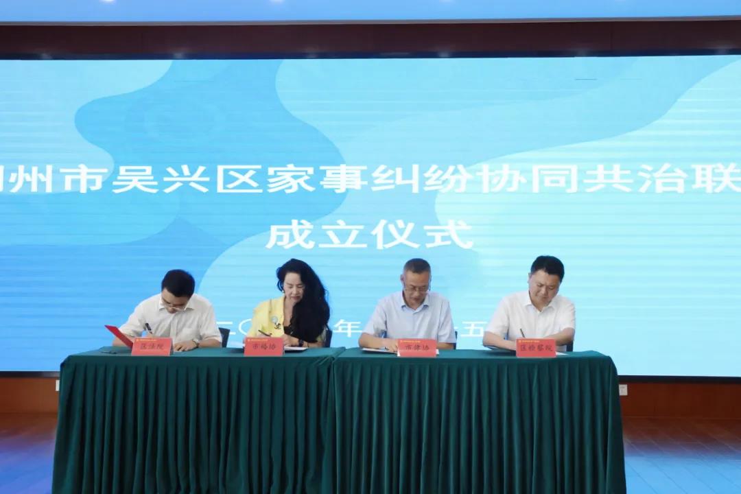 7月15日,市律协参与组建吴兴区家事纠纷协同共治联盟,将持续强化家庭矛盾的实质性化解,加快协同治理水平的跃级提升,助力优良家风的培育培树,努力打造家事领域综合治理的“吴兴样本”。