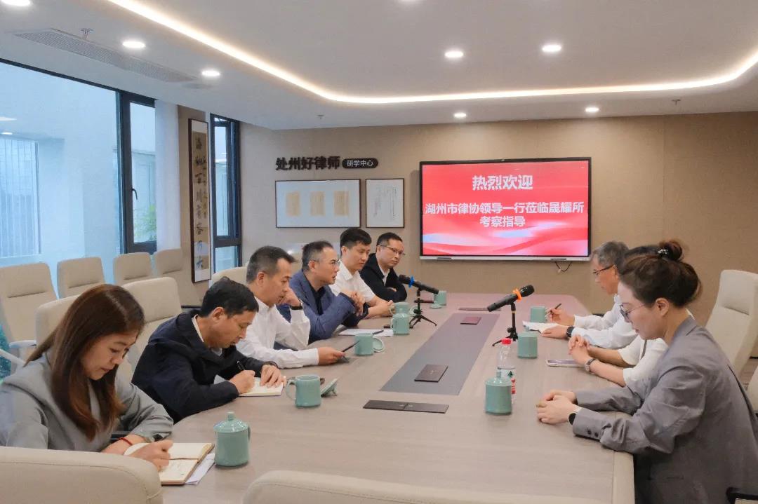 考察团一行还分别走访了丽水市浙江晟耀律师事务所和金华市浙江泽鉴律师事务所,围绕党建所建、合伙人制度、专业化发展、青年律师培养等工作进行交流探讨。