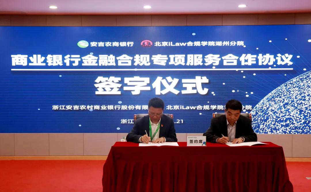 本次论坛,安吉农商行党委委员、行长陶成斌代表安吉农商银行与北京iLaw合规学院湖州分院签订《商业银行金融合规专项服务合作协议》。双方下一步将共同推进企业合规管理专项合作。