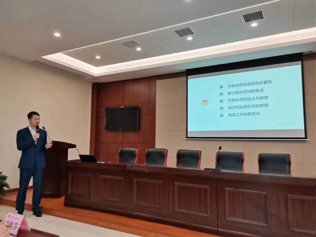 本次授课内容是新修订的《行政处罚法》,周芳玄律师主要从行政处罚法的修改背景、修改亮点、行政处罚的定义与种类、地方性法规处罚的权限和执法工作的新变化等五个方面进行授课,并结合实践中典型的行政处罚案例进行讲解,深入浅出地指出了新修订行政处罚法给行政执法带来的机遇和挑战,内容丰富,实用性和指导性都很强。