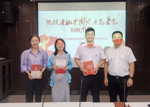 为庆祝中国共产党成立100周年,浙江银湖律师事务所党支部组织开展了《颂建党百年、传红色基因》主题教育系列活动。在七一来临之际,银湖所党支部全体成员集聚一堂,喜迎建党百年。