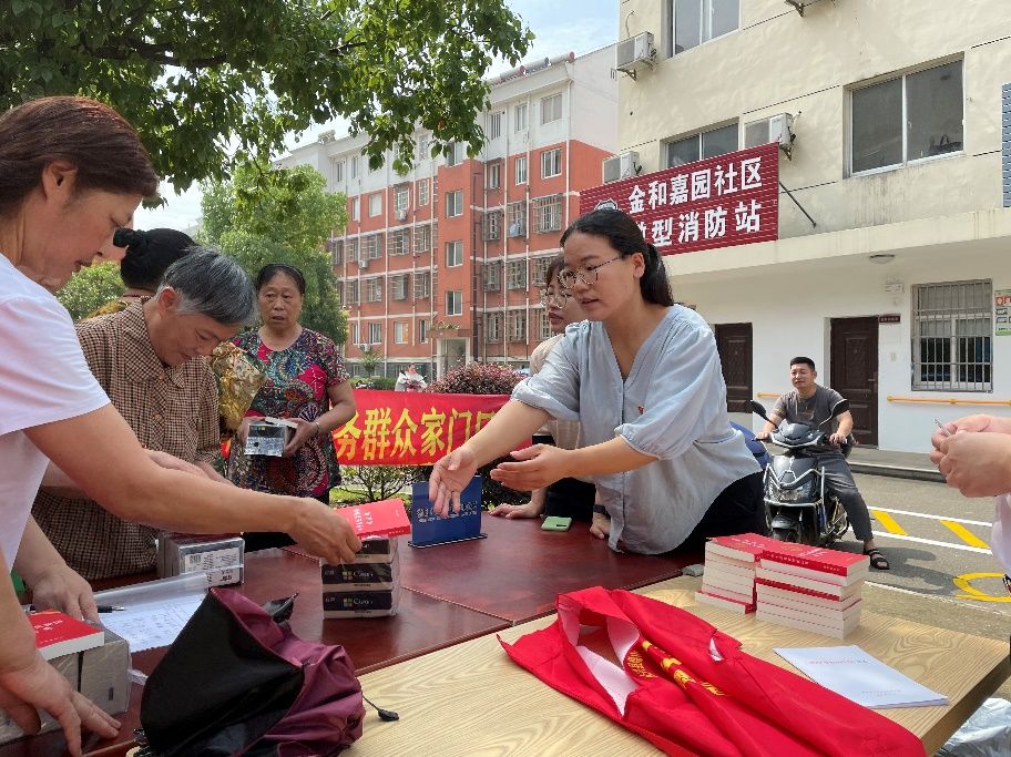 在现场,为前来参与咨询的居民免费赠送《民法典》。