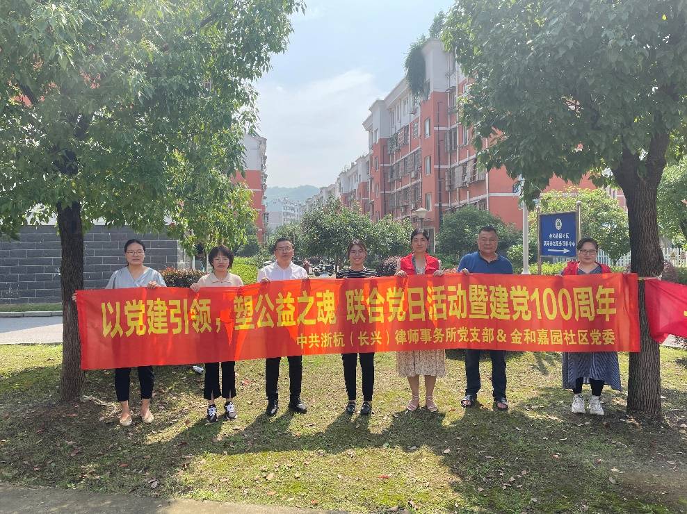 2021年7月1日,致力于中华民族复兴富强的中国共产党迎来了百年华诞。值此盛典之际,为进一步增强党员律师与人民团结奋斗的使命感,同时也为进一步了解基层结对支部的党建和业务情况,从而更好地推动基层支部建设,2021年7月5日上午9:00,浙江浙杭(长兴)律师事务所党支部副书记程李斌律师带队党员律师与金和嘉园社区党委共同开展“以党建引领塑公益之魂联合党日活动暨建党100周年”联合党日活动。金和嘉园社区党委书记程晓刚、金和嘉园社区党委副书记王素贞积极参与。