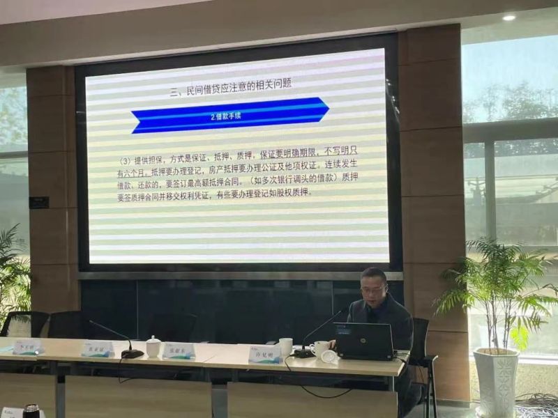 讲座伊始,许主任从企业财务风险控制和民间借贷风险控制两个方面开展讲座内容。由于中小企业资本实力不足、抗风险能力弱等特点,如不加以合理控制,企业将面临资金链断裂的风险。故而,深入分析中小企业财务风险形成之原因、切实加强财务风险之防范是必不可缺的,针对如何有效防范和化解中小企业财务风险提出了具体的建议。随后,许主任从民间借贷的含义、相关法律和司法解释规定、应注意的相关问题、经济形势好坏对民间借贷活跃度的影响等方面分享了其独到见解和思维方式。