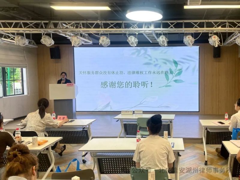 2024年5月31日,依托北京隆安(湖州)律师事务所成立的吴兴区家事法理工作室在吴兴区妇联指导下,由隆安(湖州)律所执业律师—沈明芬为柯坪县妇联组织的17名村社妇联主席及优秀妇女代表开展“妇女儿童权益保护”法律知识专题讲座,积极推动“吴柯”两地社会普法工作进程,促进法治社会建设。吴兴区妇联党组书记、主席范慧敏、柯坪县妇联党组书记、主席王芳出席并致辞。