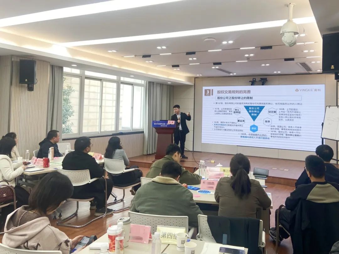 2024年3月21日下午,我所叶斌律师、潘峰峰律师受湖州市经济和信息化局、湖州市企业之家邀请为湖州市高管专业班(法律)开展《新《公司法》六大重点条款解读》主题讲座,湖州市高管专业班成员参加了此次的活动。