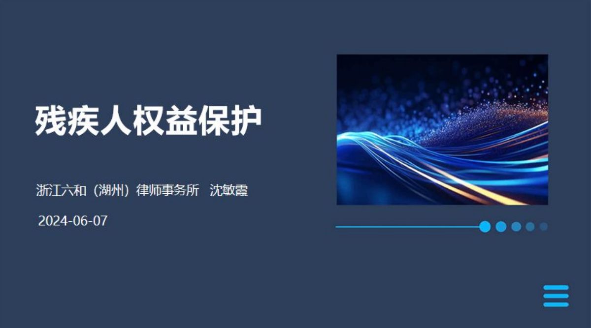 为做好特殊群体残疾人的普法宣传,进一步增强残疾人依法维权意识,切实维护残疾人合法权益,6月7日,湖东街道残疾人之家组织开展培训活动,我所沈敏霞律师受邀为培训人员开展主题为“残疾人权益保护”的普法专题讲座。
