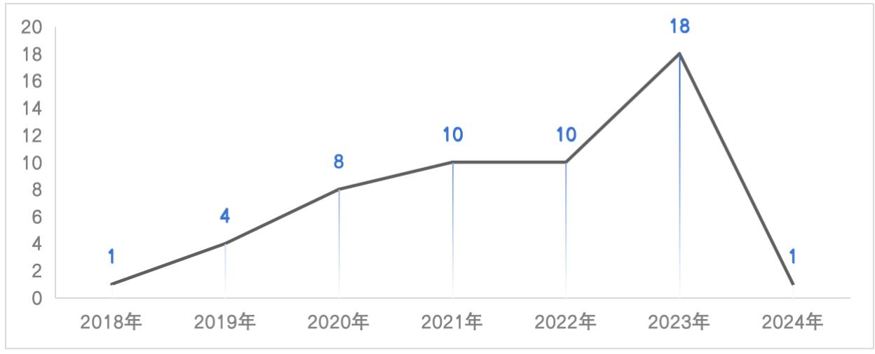 就剖析样本的质量而言,样本文书涉及是否批准债务人自行管理、是否调整公司股权架构、是否差别对待控股股东与中小股东、是否让渡出资人全部股权等与出资人权益调整密切相关的核心议题;样本设计年份跨度大,包括2018年至2024年近7年的上市公司破产重整案例,且案例数量逐步呈上升趋势;样本涉及地域广泛,包括黑龙江、江苏、辽宁、四川、浙江、湖北、上海、北京等多个省份。数据样本的多样性在一定程度上说明实务操作对破产重整出资人权益调整规则存在分歧,进一步说明探析出资人权益调整制度之实践价值。