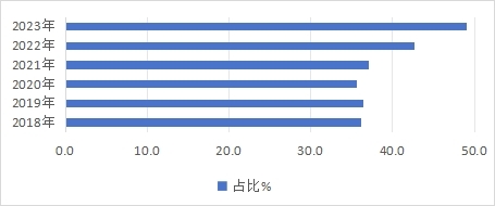 通过查询中国裁判文书网,以案由为“侵害作品信息网络传播权纠纷”进行检索,发现2020年以前案件数量逐年上升,从2021年开始每年的侵害作品信息网络传播权案件每年均有所下降,但数量仍然巨大,而且这仅仅是公开的信息,实际仍存在巨量的未上网公开的案件。再以案由为“著作权权属、侵权纠纷”进行检索,发现2018年至2023年期间,侵害信息网络传播权案件占整个著作权属、侵权纠纷案件的占比分别为36.2%、36.4%、35.7%、37%、42.7%和49.1%,这一比例呈现出逐年递增的趋势,凸显了侵害作品信息网络传播权问题的严峻性和复杂性。