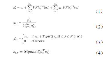 Deepseek-V3的混合专家机制(MoE)的算法架构由四个环环相扣的函数公式构成:公式(1)为主输出公式,输入序列ut结合共享专家网络和路由专家网络计算出模型最终输出结果h’t,其中FFNi(s)代表共享专家(Shared Export),FFNi(r)代表路由专家(Routed Expert),而路由专家的选取由第i位专家的门控值(Gate Value)gi,t决定;公式(2)为门控归一化(Normalization)公式,对原始门控值g’i,t进行归一化,确保所有门控系数和为1;公式(3)为Top-K稀疏门控公式,基于专家与Token之间的亲和力(affinity)分数si,t获取专家的原始门控值g’i,t,选取的范围为TopK,即在第t个Token(词元)与所有路由专家计算出的亲和力分数中,K个最高分数的集合(set);公式(4)为亲和力分数si,t计算公式,基于Sigmoid函数通过第t个Token与第i个专家的质心向量计算出亲和力分数si,t。