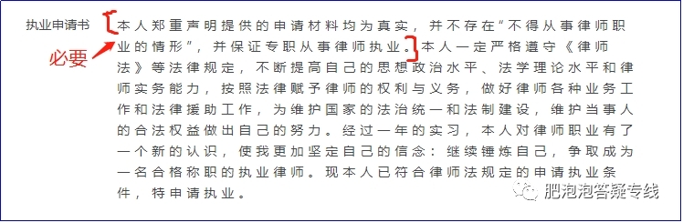 (一)《执业申请书》(不能过于简单,承诺必须一字不差。)